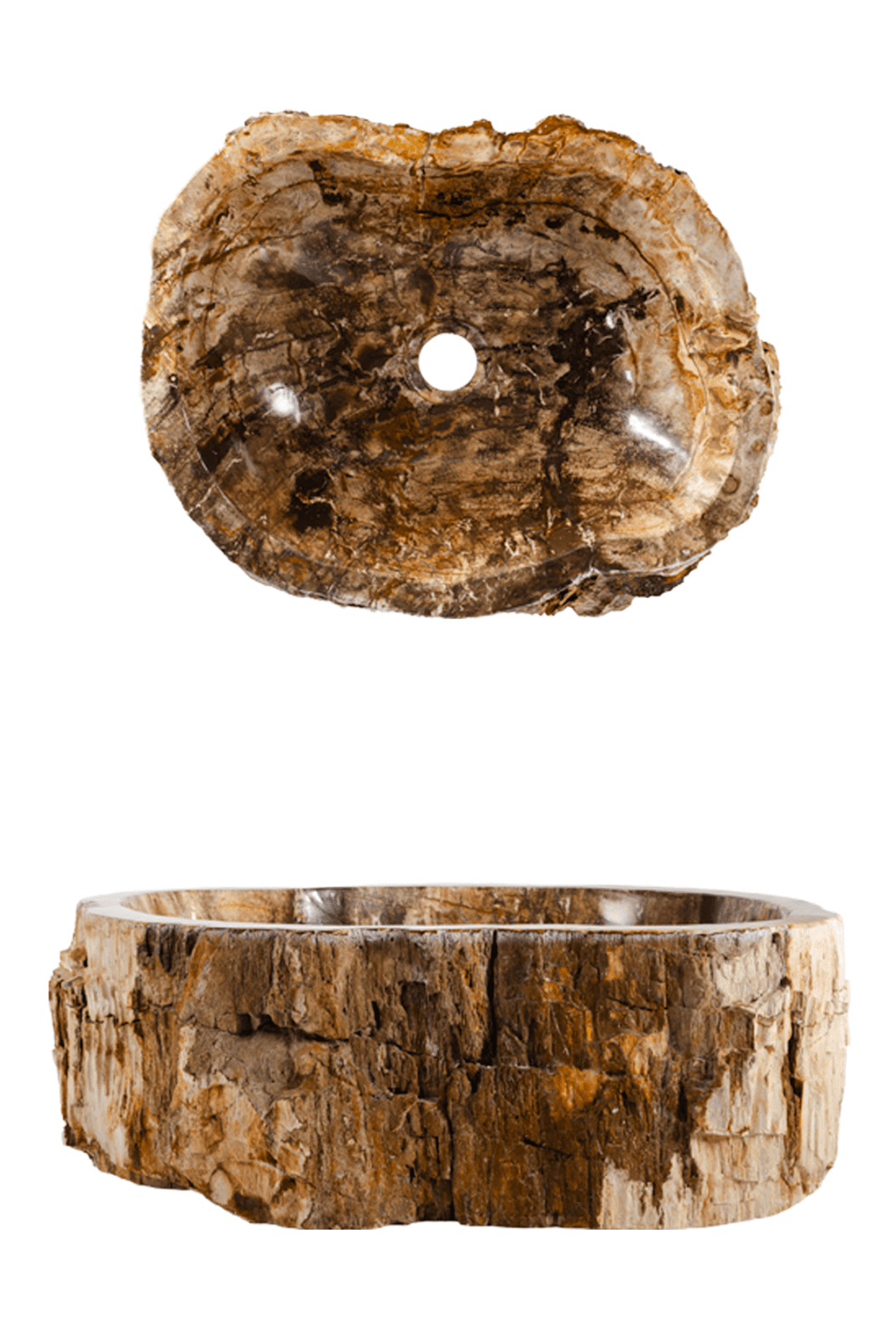 LINHA PETRIFICADA – Cubas esculpidas à partir de madeira petrificada (fóssil)