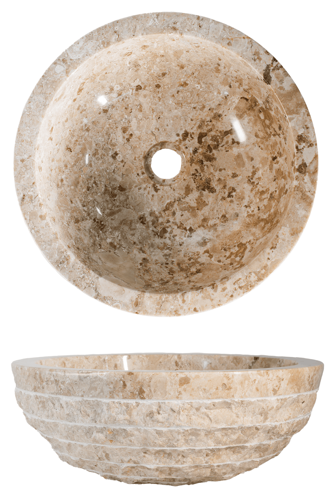 LINHA ROMA – Cubas redondas em mármore creme com exterior rústico