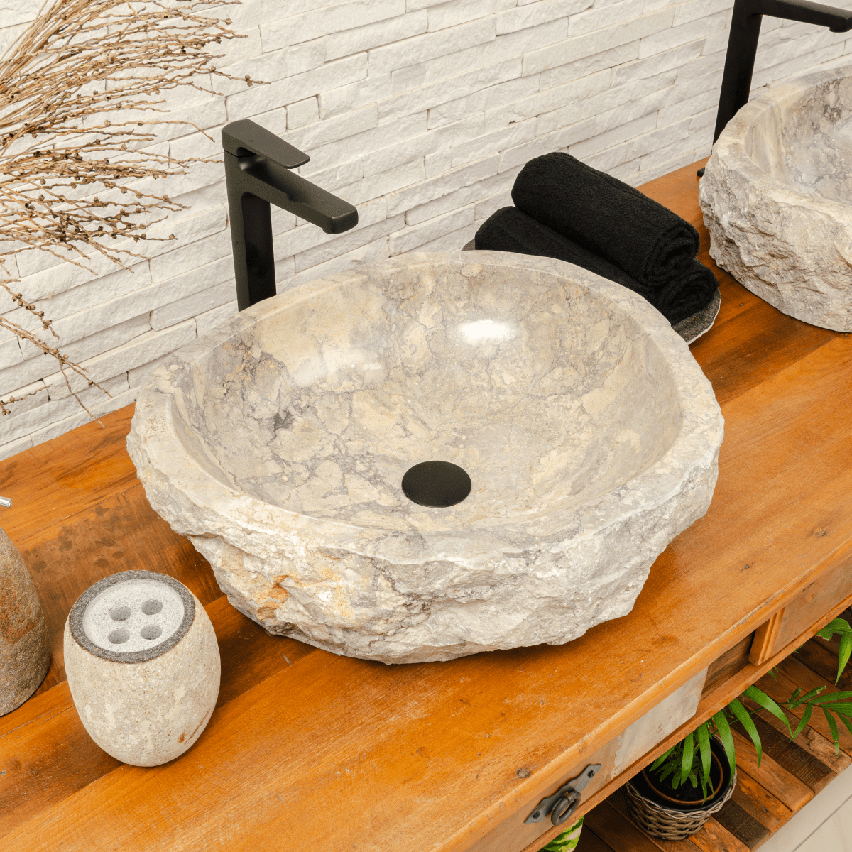 Surge da transformação que acontece após rochas calcáreas serem submetidas às atividades vulcânicas. As cubas Zadig têm origem no cinturão de fogo do Pacífico, região rica em vulcões e atividades sísmicas. Feitas à mão, sem processos industriais, trazem em sua alma a arte e a cultura ancestral dos artesãos indonésios que as produzem conservando sua beleza rústica na parte externa e o polimento perfeito que garante a manutenção diária em sua casa.