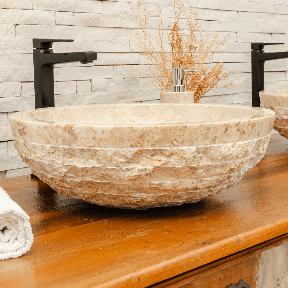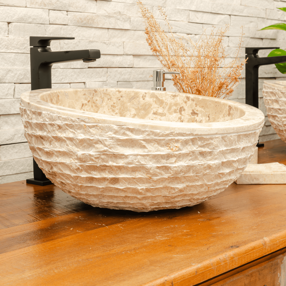 As cubas da Linha Roma tem o interior polido e seu exterior pode ser polido, rústico, rústico com tiras horizontais ou com corte angulado.