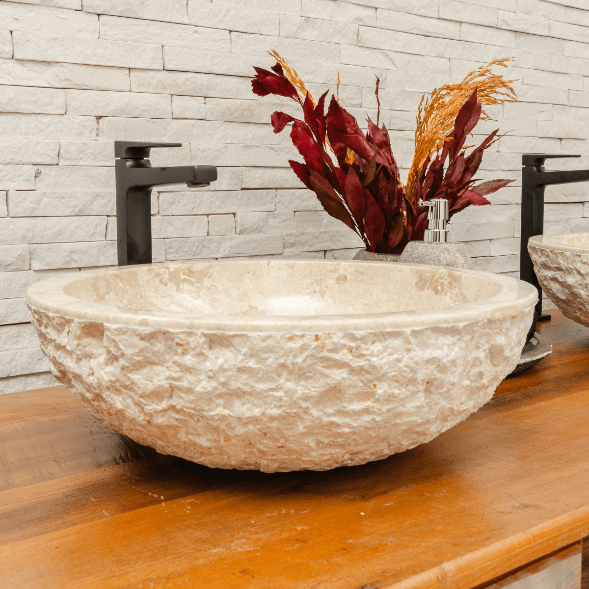Ainda que as peças sejam únicas, porque são feitas à mão, é possível combinar duas cubas de mesmo tamanho, cor e acabamento em bancadas para banheiro de casais e levar a sofisticação e o conforto que garante a praticidade do espaço pessoal.